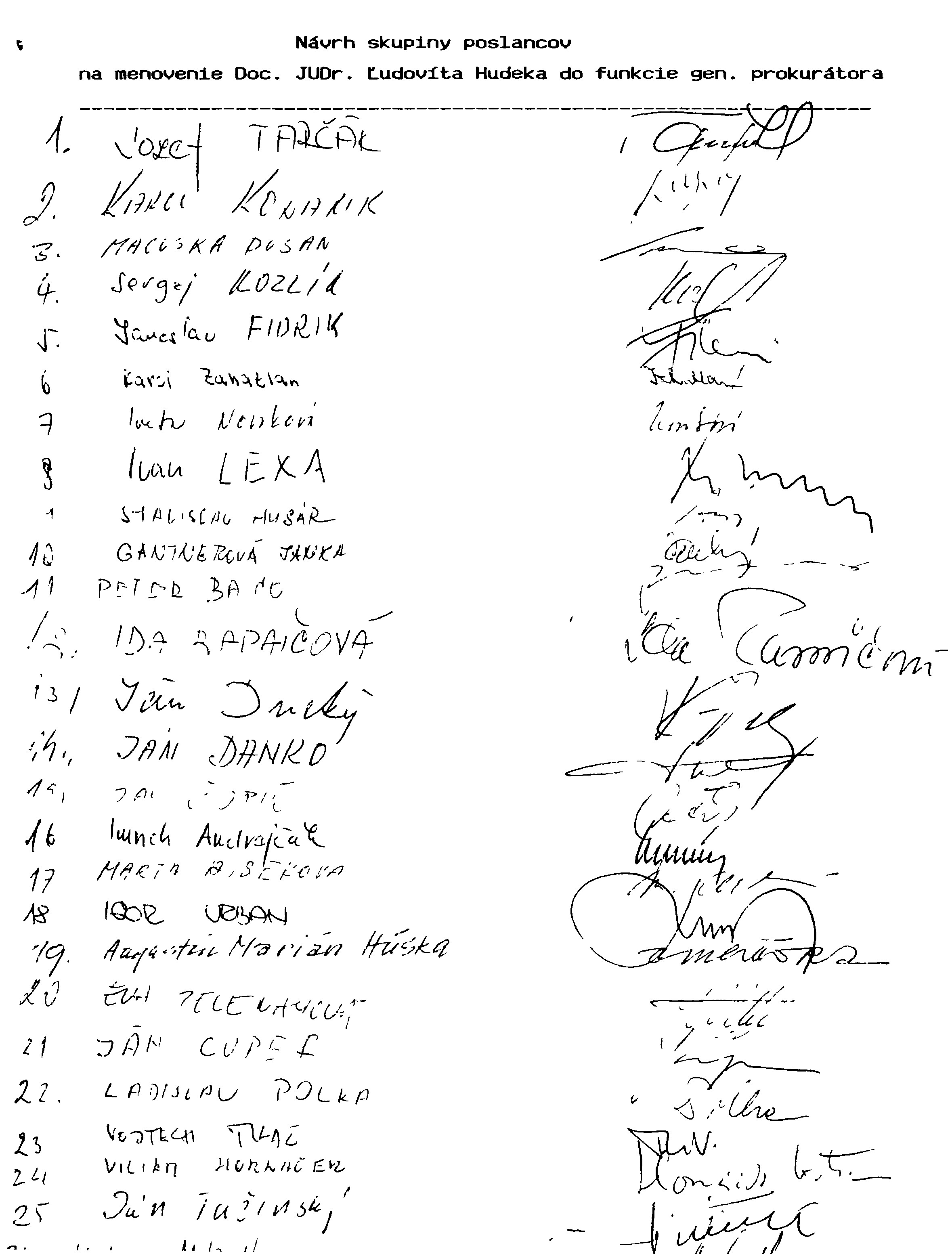 Návrh uznesenia Národnej rady Slovenskej republiky z 3. novembra 1994 k návrhu Národnej rady Slovenskej republiky na vymenovanie generálneho prokurátora Slovenskej republiky