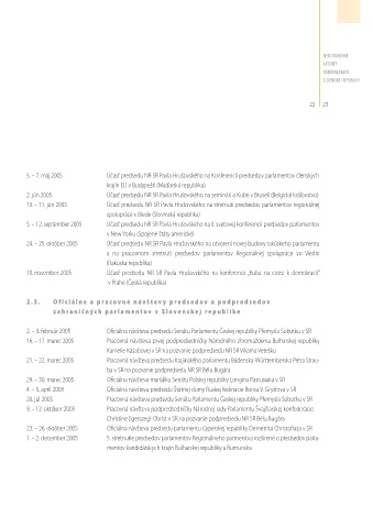 2.3. O ficiálne a pr ac o v né ná v š te v y pr edsedo v a podpr edsedo v