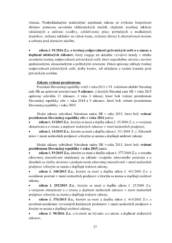 rade SR na opätovné prerokovanie 9 zákonov, z ktorých Národná rada SR v roku 2015
