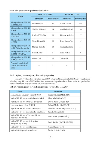 Výbory Národnej rady Slovenskej republiky – prehľad k 31. 12. 2017